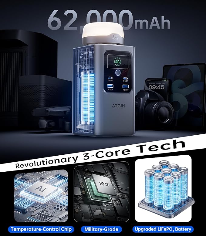 - Special Feature : 198.4Wh Mega Capacity, 4 Device Charging Ports, Compact, Portable, 4-Mode Camping Light, LED Display, Military-Grade BMS, AI Temperature-Control Chip, Upgraded LiFePO₄ Battery, PD 100W USB-C, QC 18W USB-A, Fast Charging, Short Circuit Protection, Over Charge Protection, Overload Protection, Over-Voltage Protection 198.4Wh Mega Capacity, 4 Device Charging Ports, Compact, Portable, 4-Mode Camping Light, LED Display, Military-Grade BMS, AI Temperature-Con… See more