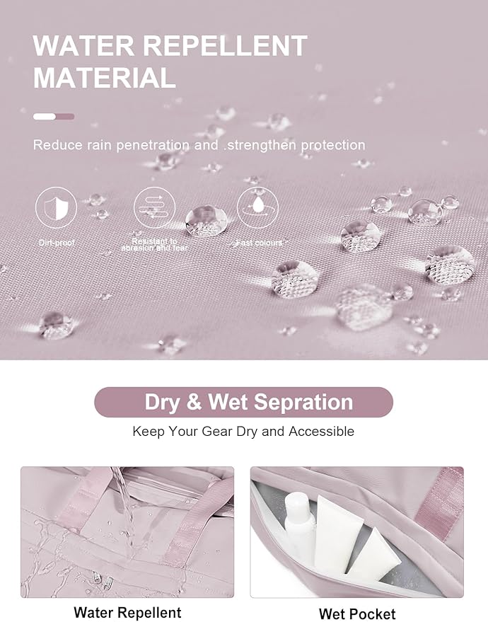 - 【Gym Bag with Shoe Compartment】The gym bag includes a ventilated shoe compartment to keep shoes separate from clean gear, ideal for sneakers, swimsuits, toiletries, and other accessories.