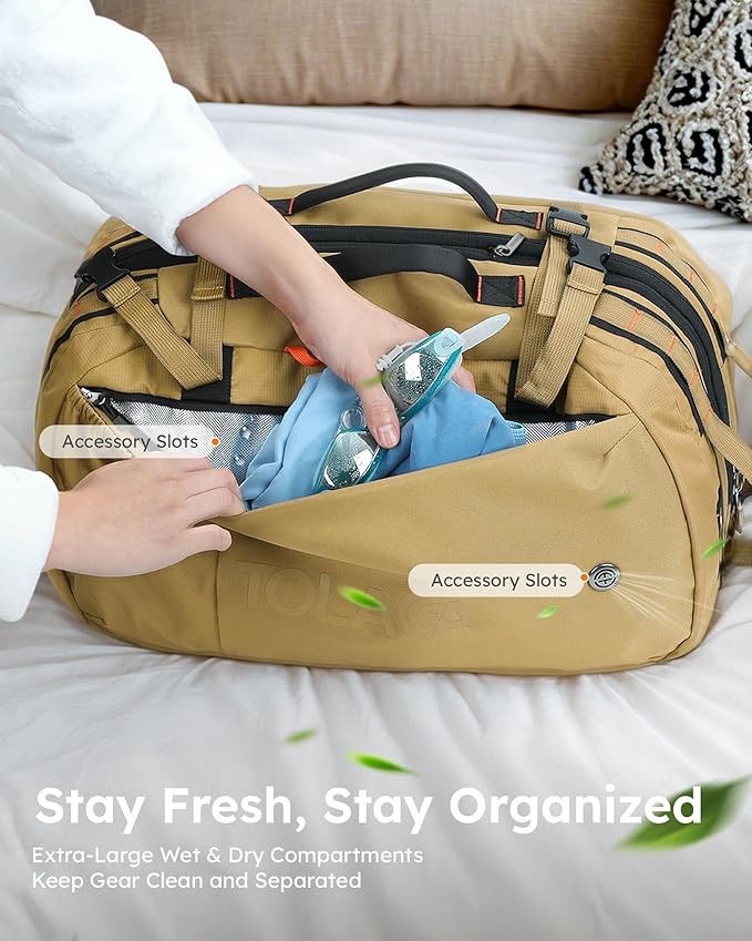 - ✅【Expandable 40L-50L for Any Journey】Expand the 40L travel backpack to 50L with dual-compartment main storage, this travel laptop backpack adapts to your needs from daily commutes to 5-day getaways. Large separate dry-wet compartments keep gym gear, toiletries, or damp clothes neatly organized. Whether you're packing light or loading up, this versatile travel bag ensures everything stays in place, making it your perfect travel companion