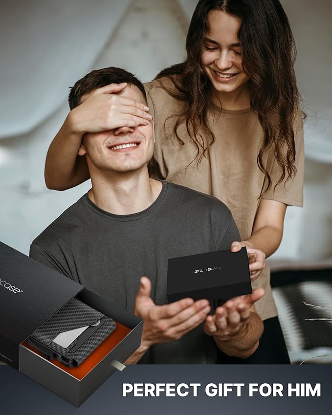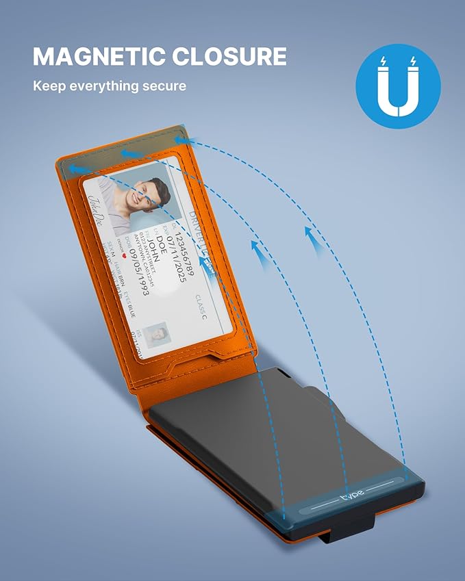 typecase Tactical Wallet for Men Card Holder: Pop Up Card Case, Genuine Leather, Smart, RFID Blocking, Slim, Minimalist, Thin, Front Pocket - 9-13 Card Capacitiy, ID Window, Money Clip (Orange)