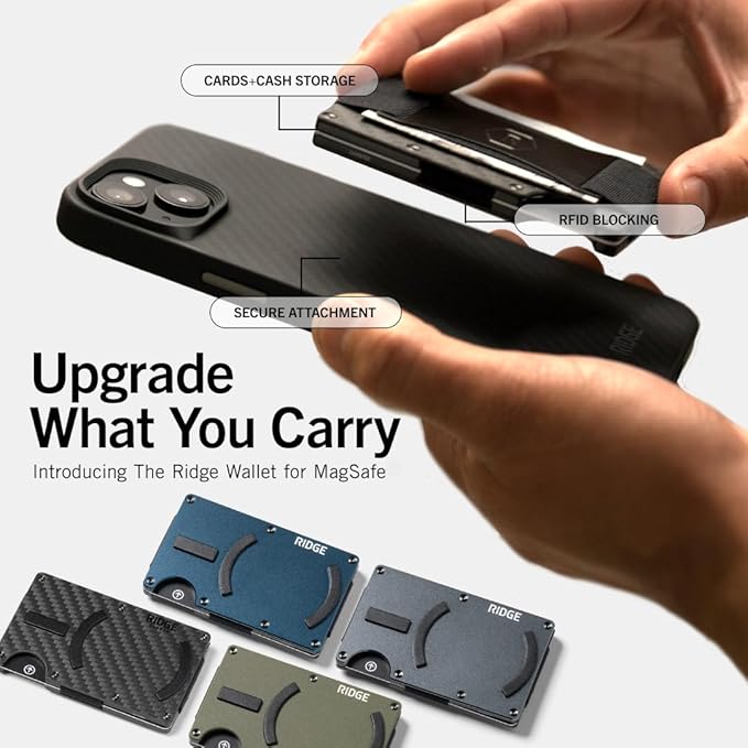 - THE RIDGE WALLET FOR MAGSAFE: Experience innovation and convenience with our one piece wallet, now MagSafe-compatible. It attaches perfectly to your iPhone, turning our best-selling pocket wallet into a sleek, secure must-have blending style, function, and cutting-edge tech in one smart design.
