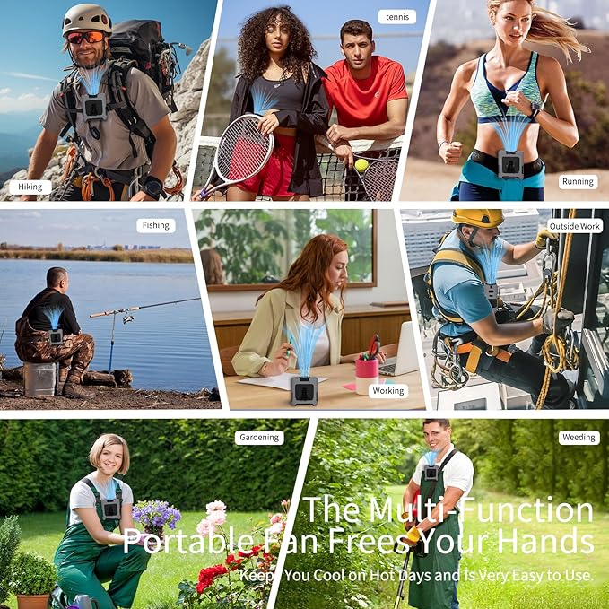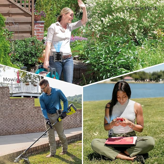 - 【Personal Waist Fan】The portable waist clip fan can be easily clipped onto the belt,hanging on the neck,or placed on the table,cooling your summer in anywhere you go,light breeze or strong wind can choose freely,no longer sweat and upset when going out in hot days.It is cooling waist fan,mini desk fan,and neck fans.