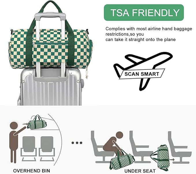 - The spacious main compartment of the cute girl weekend bag can accommodate sports jackets, pants, shirts, hats and thermos cups. The zippered sacks in the main compartment can hold important small items such as cards