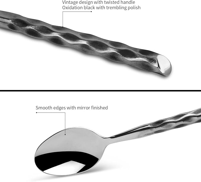 - 【HOW TO CARE】Please use a mild dish soap and warm water to clean the silverware. Avoid using steel wire brushes, hard sponges, or any other abrasive cleaning tools, as they can cause damage to the flatware.
