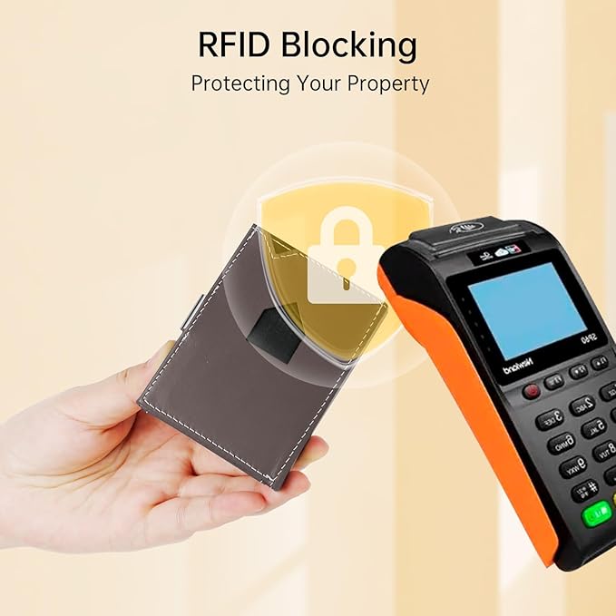 - 【RFID Safeguard】Advanced RFID blocking technology. Wallet embedded can block and interfere with commonly used 13.56mhz or higher shielded cards, which can prevent credit/debit/transportation cards etc. from being scanned by unknown devices, providing security for your belongings and data. Suitable for daily use in your pocket or bag, can be used to store ID card, work permit, transportation card, etc.