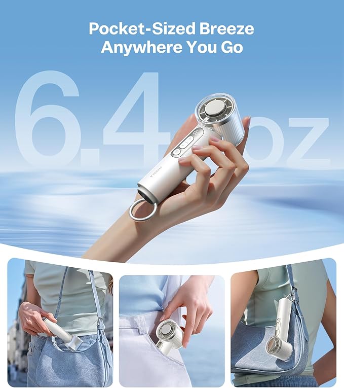 - Feather-Light Freedom You'll Forget You're Carrying: At 182g (lighter than your smartphone!), this palm-sized portable hand fan slips invisibly into pockets or chic crossbody bags. The foldable round clip lets you dangle it from backpacks, belts, or fingertips – because real freedom means beating heat without sacrificing style or mobility on beach days, city explorations, or last-minute adventures.