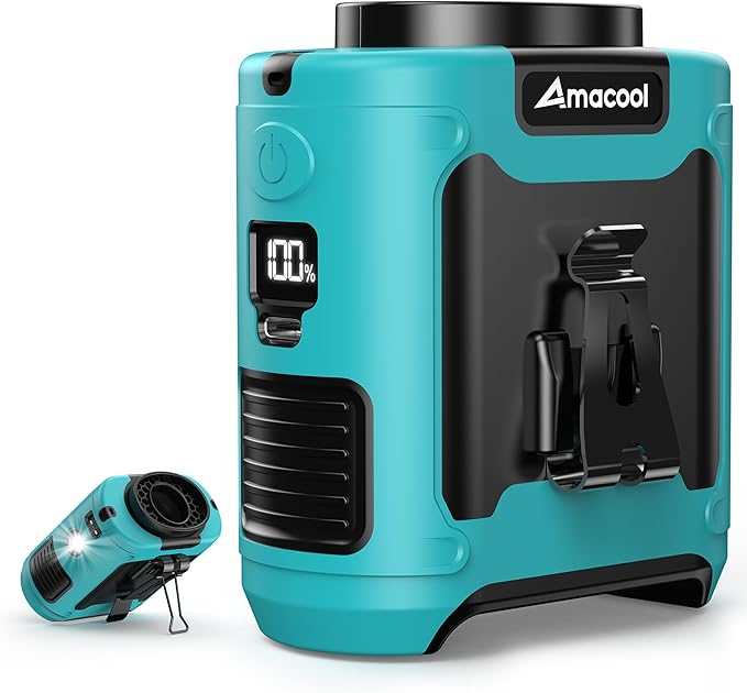 AMACOOL Portable Waist Fan Clip On, MAX 40H Work Time, 10000mAh Rechargeable Wearable Shirt Fan with Light 16000RPM Powerful 5 Speeds Belt Fans Personal Cooling Fans for Outdoor Jobsite Travel