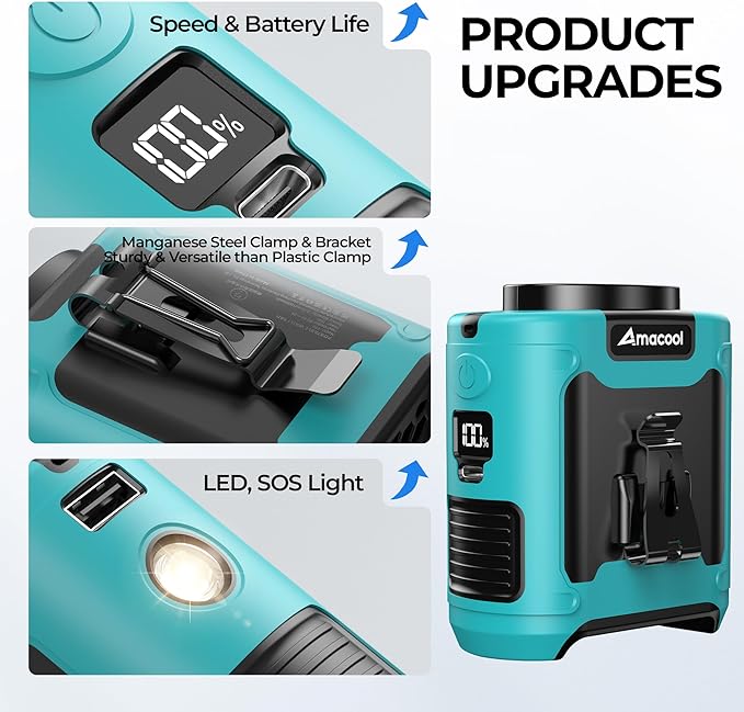 - 40H Max Running: AMACOOL waist clip fan is designed with buyer's needs in mind, providing up to 40 hrs of continuous airflow at wind speed 1 with the 10000mAh built in battery, it lasts up to 8 hrs even in the strongest speed, greatly reduces the number of recharges, LED display let you know when to charge; Feature with a 5V-2A USB output port to charge your phone in emergency