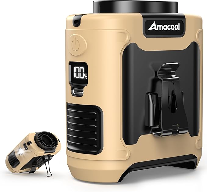 AMACOOL Portable Waist Fan Clip On, MAX 40H Work Time, 10000mAh Rechargeable Wearable Shirt Fan with Light 16000RPM Powerful 5 Speeds Belt Fans Personal Cooling Fans for Outdoor Jobsite Travel
