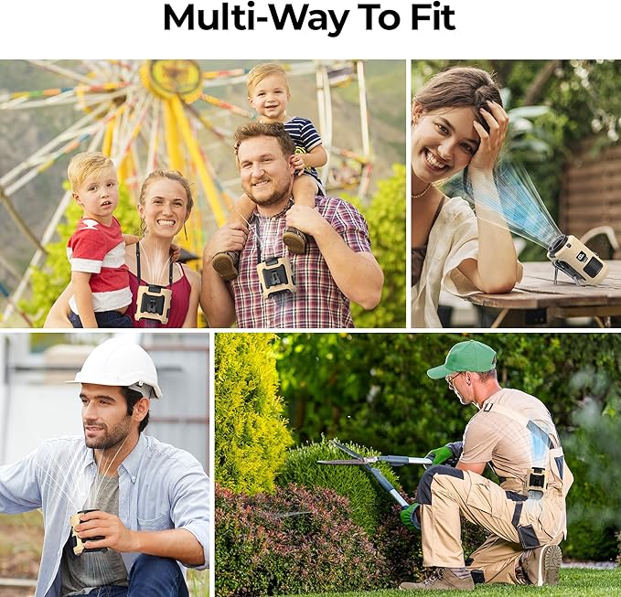 - Versatile Belt Fan: Use it as a waist cooling fan when clip it on belt, shirt, or pants, or as a neck fan to free your hands with a landyard, bracket design lets it stand as a desk table fan; It also features an ultra bright LED light and SOS flashlight, making it useful for nighttime walks and outdoor adventures