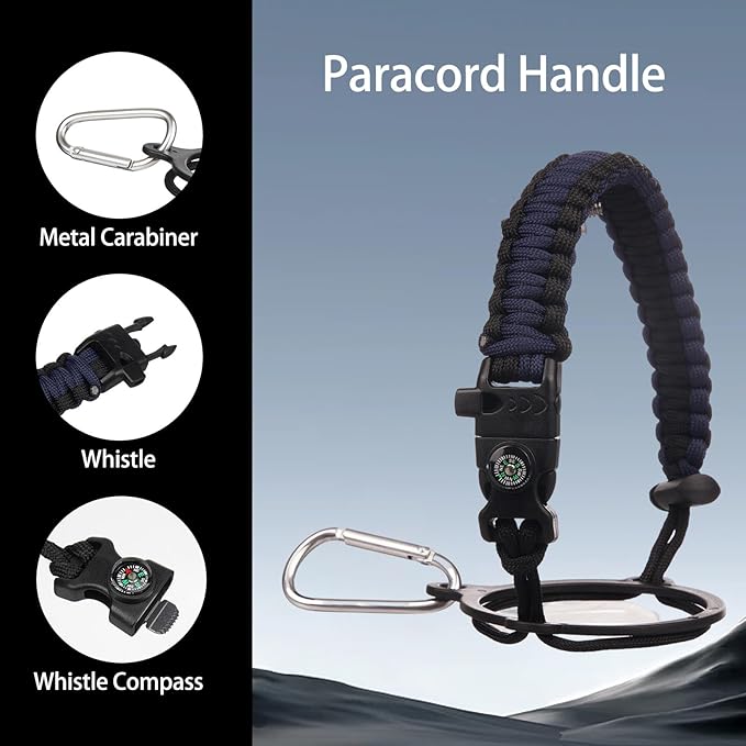 - Suitable for all occasions: This insulated water bottle comes with a beautiful hand-woven nylon paracord, and the paracord handle is equipped with a compass and carabiner and a whistle. It is a fully functional essential water bottle for camping, climbing, hiking, home use, travel, cycling, swimming fitness, and commuting
