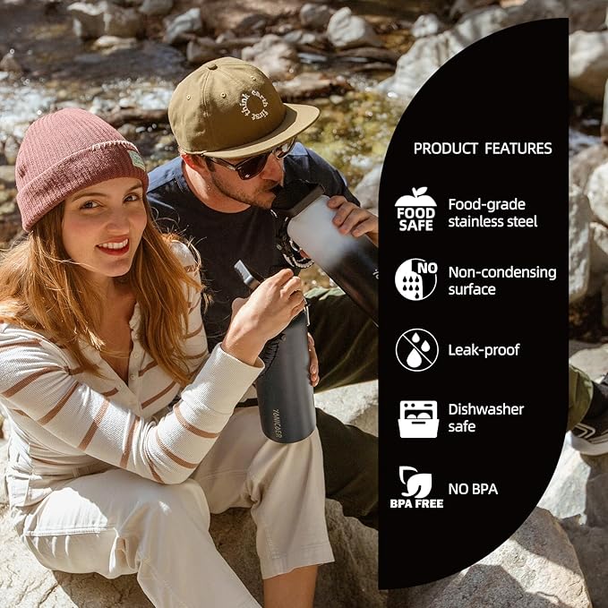 - High-quality materials: Made of food-grade 18/8 stainless steel, it is sturdy and durable and will not rust. The surface is coated with anti-slip powder, anti-oxidation, BPA-free and odorless. Its wide mouth opening allows you to fill ice and clean it easily and quickly. It is dishwasher-safe, making it a perfect water bottle for your daily drinking