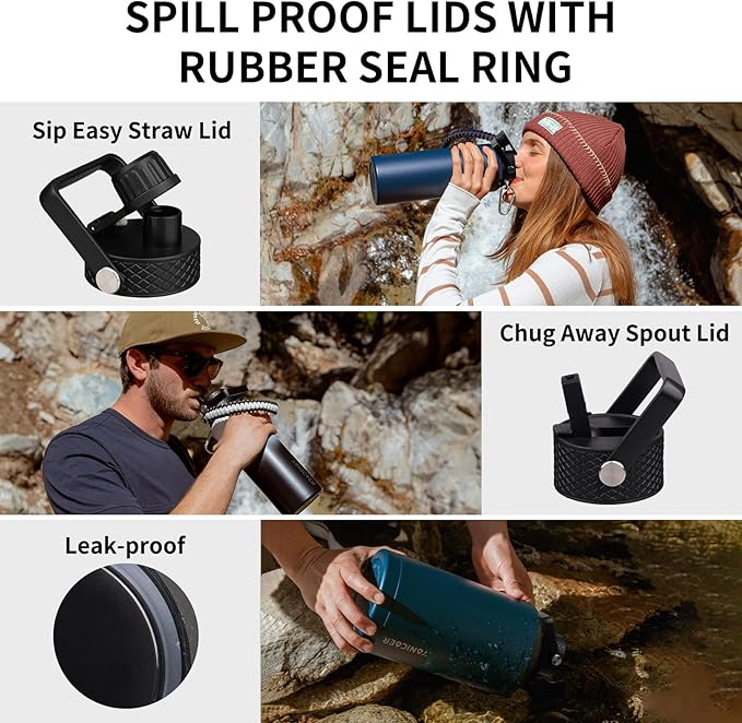 - What you get: We provide continuous after-sales service and 100% customer satisfaction to prevent any leakage or bonding failure. Your purchase includes: YONICOER water bottle, 3 lids, paracord handle, 1 brush, 2 straws, 1 straw brush, 1 cup sleeve