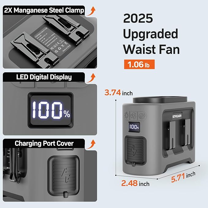 - Long-lasting Battery: The KITWLEMEN waist fan features a 14500mAh battery, providing up to 35 hours of continuous cooling on low speed, perfect for camping, hiking, and outdoor adventures to keep you cool