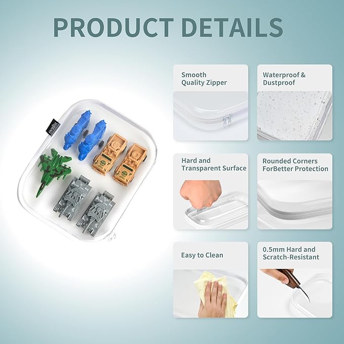 - Clear Design: The transparent design hard shell zipper case allows you to quickly find what's inside without opening the box. Save time and avoid the annoyance of searching for items with these clear transparent storage boxes.