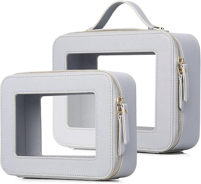 - [Makeup bag set] : Our Clear Makeup Bag Set measures 8.07" * 5.9" * 2.75" + 9.44" *7.28" *3.5" , making it perfect for daily or travel use.