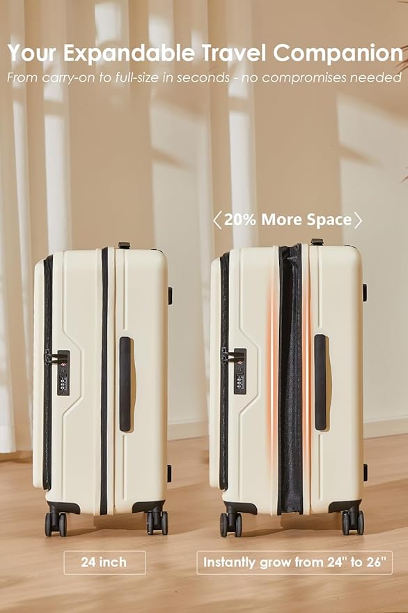 HotWay 24 Inch Expandable Front Opening Checked Luggage with Cup Phone Holder and USB Port, Lightweight Hardshell Suitcase with Wheels and TSA Aproved Locks