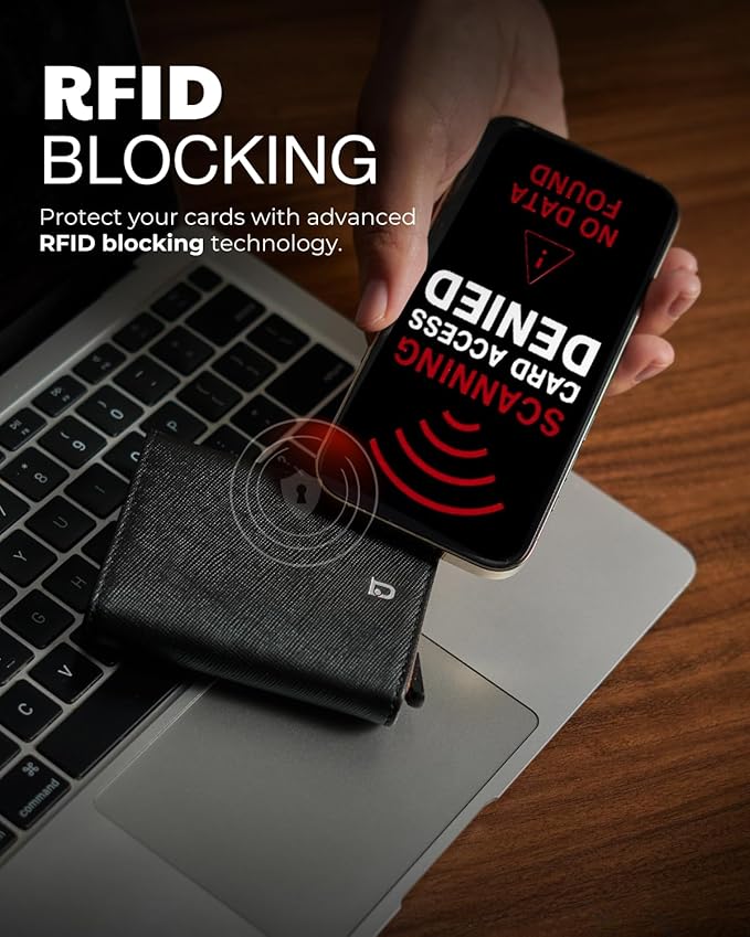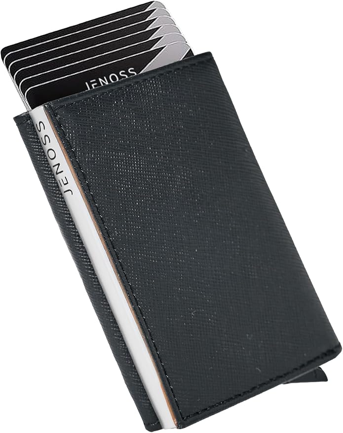 - 【 RFID Blocking Security 】 In today's world, identity theft is a growing concern. Jenoss comes equipped with cutting-edge RFID-blocking technology, creating a secure barrier around your credit cards, IDs license, and other sensitive information, ensuring your data remains safe from electronic pickpocketing. This protective feature makes it a must-have men's wallet for the modern mens.