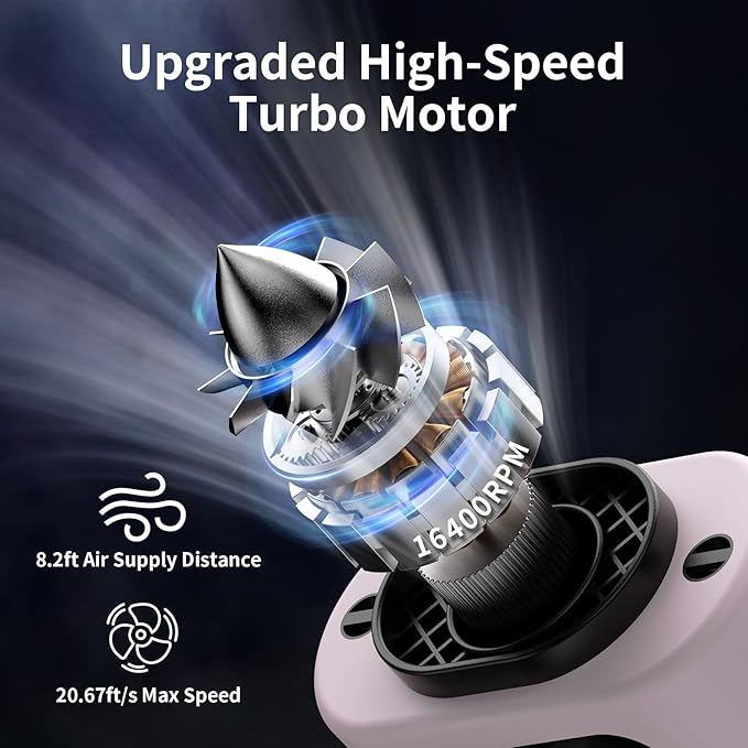 - 【4 Levels +1 Storm Mode Powerful Wind Adjust】Equipped with a high-speed turbo motor, portable waist fan can reach a maximum speed of 14600 RPM, generating airflow of up to 20.66ft/s with an air supply distance of 8.2ft, cooling down in a second. With 4-gear adjustable wind speeds and a dedicated storm mode setting, from natural to strong, can be set to various modes based on your needs, making it ideal for construction workers who in high-temperature environments