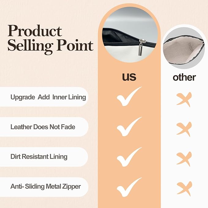- Superior Quality: Constructed from leather and featuring a smooth zipper closure, our canvas makeup bag blends elegance with durability. The interior is lined with waterproof material,offering both high quality and practicality.