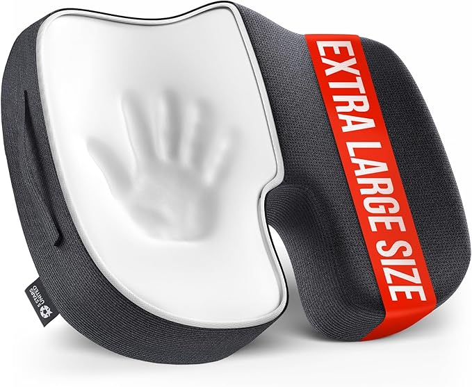 - 𝗕𝗲𝘀𝘁 𝗦𝗲𝗮𝘁 𝗖𝘂𝘀𝗵𝗶𝗼𝗻 - If you spend +8 hours a day in a seated position, this comfortable pad is just right for you. It provides additional support you need to maintain good posture and the natural curve of the spine. By evenly distributing weight of the body, it offloading pressure on the spinal discs. The ergonomic design helps to increase blood flow, prevents pain in the lower back, helps with muscle fatigue, leg tightness, hamstring. It allows you to sit upright naturally without pain