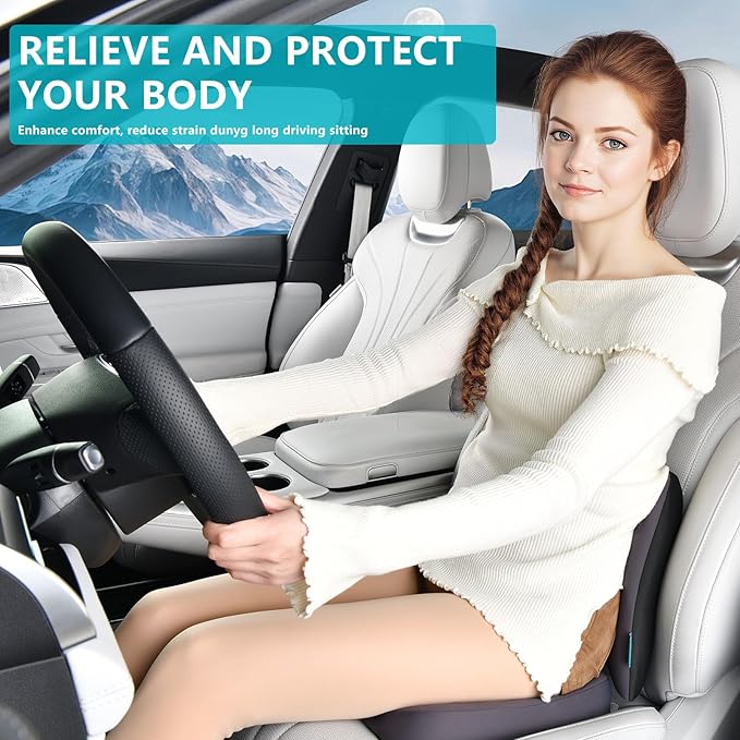 - Upgraded Silicone Memory Foam for Lasting Comfort: Made from soft, supportive memory foam, our back support cushion offers a perfect balance of comfort and firmness. Our office seat cushion features a 3D contoured design that evenly distributes pressure on the hips and legs, alleviating discomfort. It retains its shape without flattening over time, ensuring a cozy experience and support whether you’re working at your desk or taking a long drive