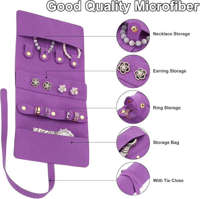 - Travel Jewelry Case Organizer: You will receive a purple jewelry storage roll measuring 38 x 18 cm / 15 x 7 inch (L*W). Elegant appearance and large capacity design can meet your needs of storing various jewelry and other small items.