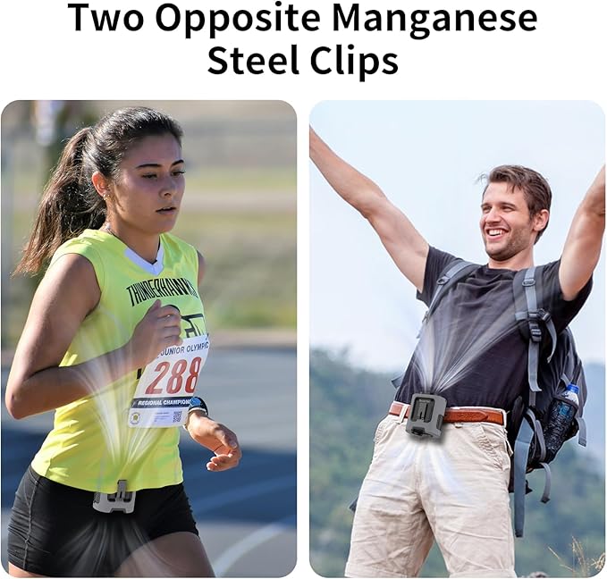 - 【Shirt Fan Clip with Silicone Cover, Anti-Drop】A practical design with two Manganese steel clamps facing opposite directions allows for more placement options. Clip a long clamp onto a belt and blow air under the shirt, as well as a short clip to prevent your shirt from blocking the intake. The body fan comes with a high-quality protective silicone leather case, which protects from shock when dropped and ensures the body fan is not damaged. It is designed for various outdoor usage scenarios, catering to occupations like workers and farmers