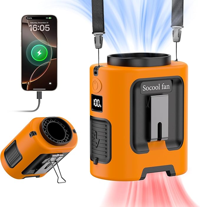 Socool Portable Waist Fan Clip on Wearable Belt 5000mAh Rechargeable Personal Fans, 25H Shirt Fan Cooling, 4 Speeds 13000RPM Battery Operated, Neck Fan Hanging for Outdoor Camping Travel Jobsite