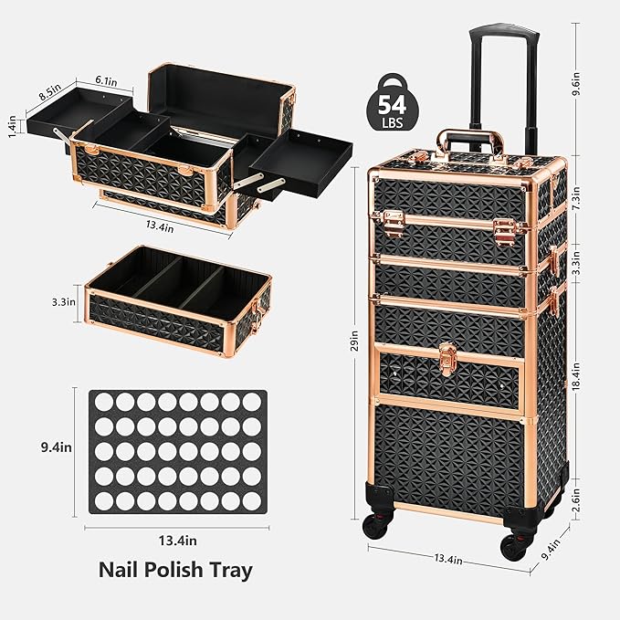 - 【Professional-Grade】 This rolling makeup case is not only designed for professionals like makeup artists, nail technicians, hairstylists and tattoo, but also makes a thoughtful and practical gift for any occasion.