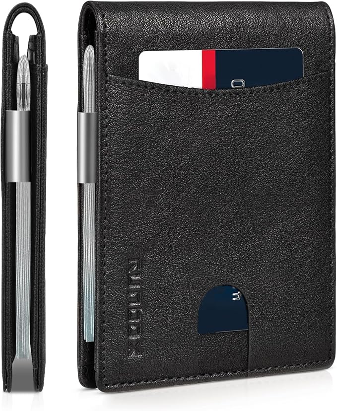 RUNBOX Money Clip Slim Wallets for Men RFID Blocking 11 Card Holder Minimalist Small Leather Bifold Men's Front Pocket Wallet Gift Box