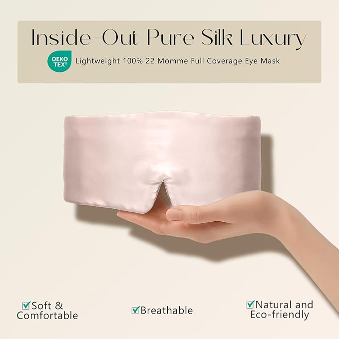 - ✅100% 22 Momme Grade 6A Luxury Construction: Crafted entirely from the highest-grade mulberry silk - including a silk-filled interior - this premium sleep mask delivers superior thickness, gloss, and durability. The full silk encasement ensures unmatched breathability, cloud-like comfort.