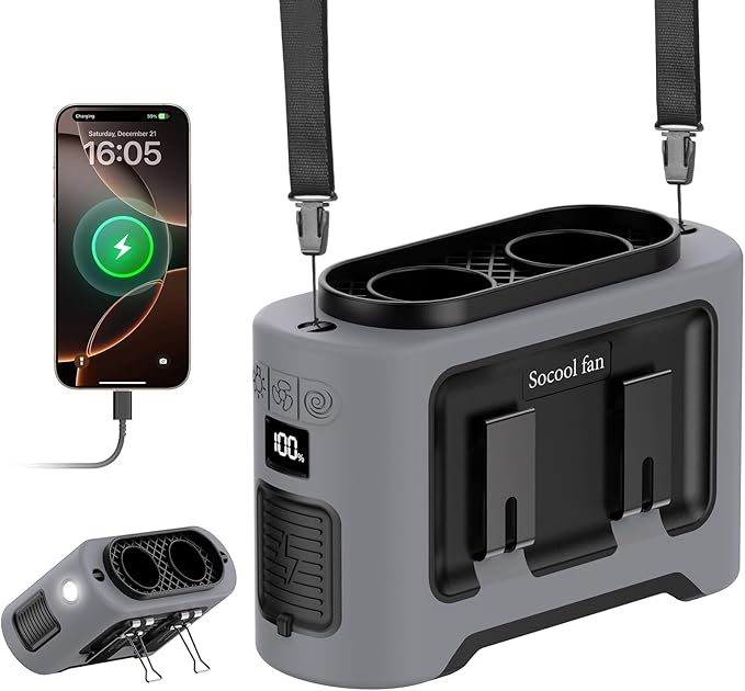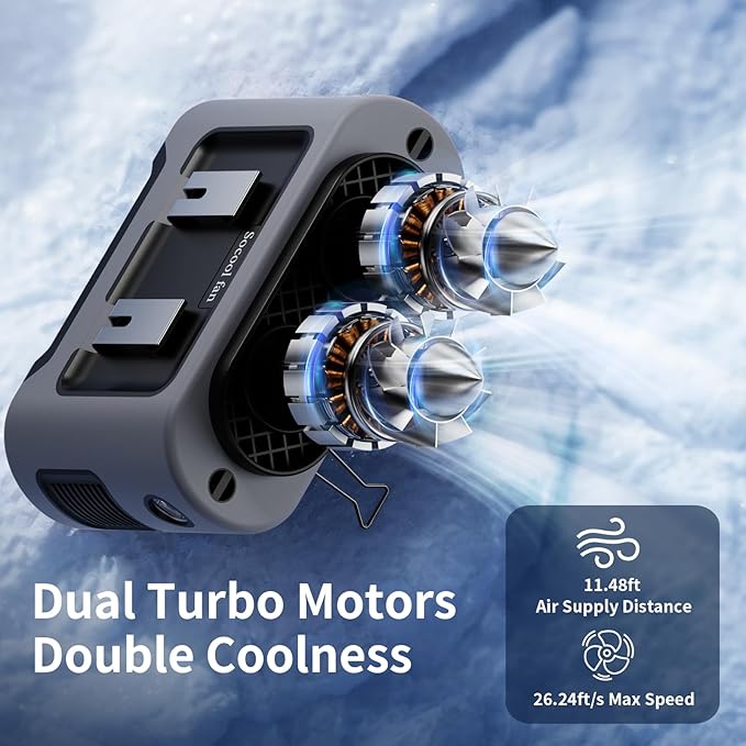 Socool 14500mAh Portable Waist Fan Clip on Wearable Belt Rechargeable Personal Fan, Dual Air Outlet, 40H Cooling 5-Speed Battery Operated Fans with Light, Neck Fan Hanging for Outdoor Camping Travel