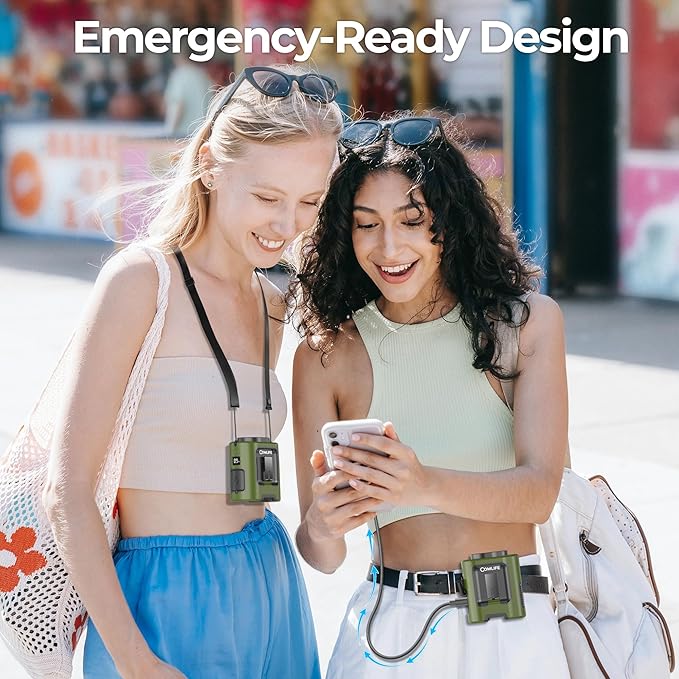 - Durable and Outdoor-Ready: Designed for outdoor use, the waist fan includes a high-quality silicone case for shock resistance and a dust cover for safe charging. The strong manganese steel clip ensures it stays securely attached, ideal for construction, hiking, and more