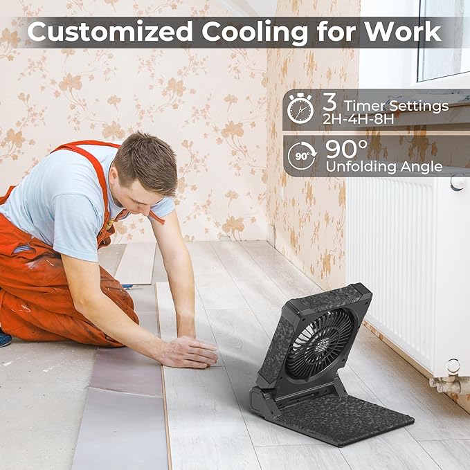 - Smart Timer and Easy Operation: Save energy with a 3-setting timer (2/4/8 hours) and monitor this table fan's status with a user-friendly interface featuring battery and timer indicators. The fan can operate during charging, so you can enjoy a constant breeze without worrying about battery depletion
