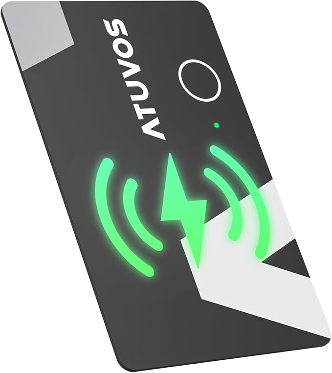 - 【Wireless Charging & IP67 Waterproof】Simplify charging with wireless technology. A full charge lasts up to 6 months, indicated by a color-changing LED light. The ATUVOS find my wallet tracker card is reusable multiple times, making it more economical. The ATUVOS wallet card tracker tag has an IP67 waterproof rating
