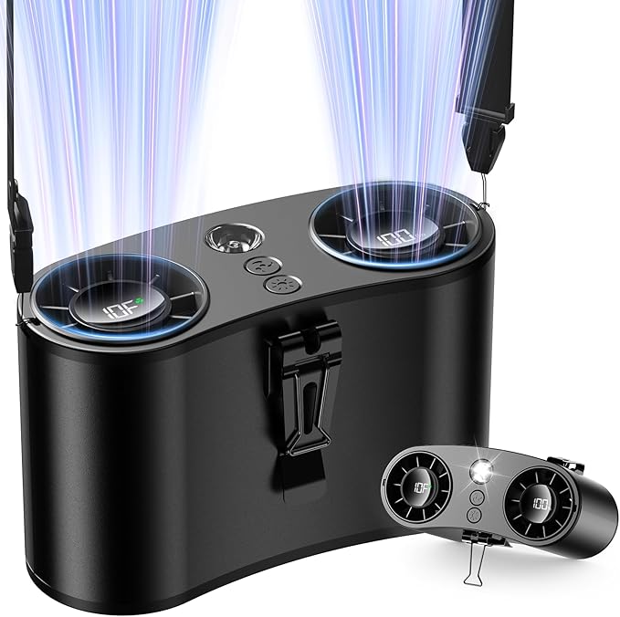 coldSky Portable Waist Fan, Upgraded 10 Speeds Personal Fan Clip On Shirt, 20000mAh Rechargeable Neck Fans With 3 Lights, LED Display, Wearable Fans for Outdoor, Jobsite, Camping, Travel