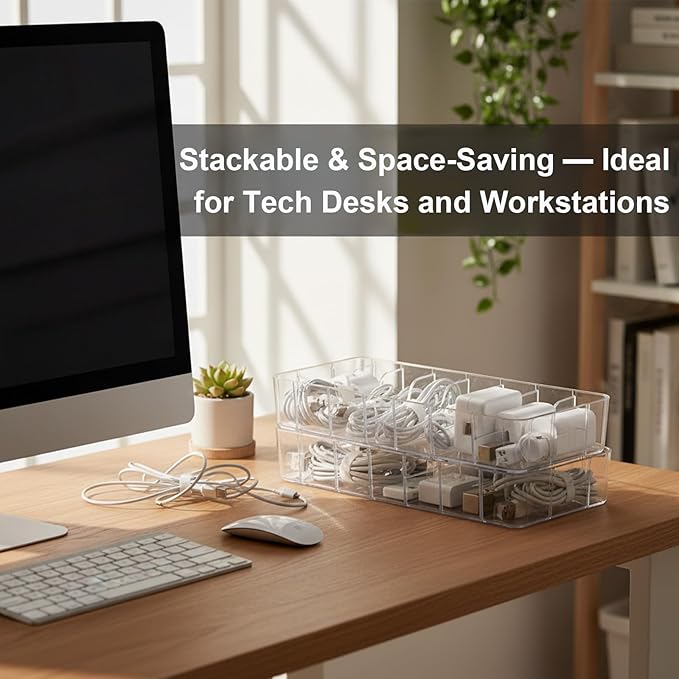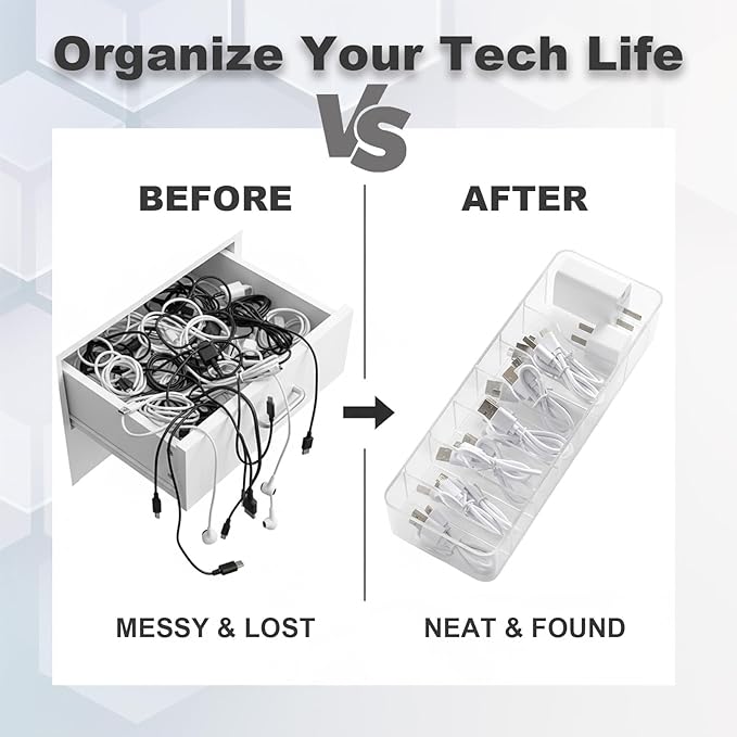 - Sturdy and Transparent: the charger organizer is made of high-quality plastic material, thickened box, sturdy and more durable, but also has a waterproof and dustproof function; the organizer adopts a transparent design, which makes it easy to identify the items inside the box and convenient to be stored and organized