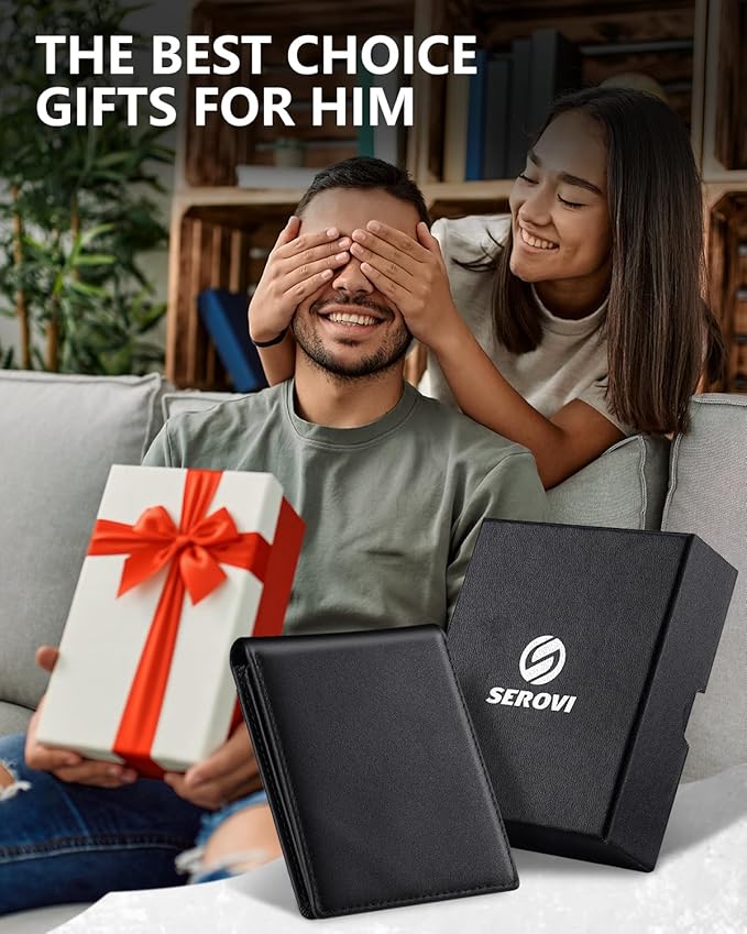 - Advanced RFID Protection:Serovi mens wallet leather builts-in shielding blocks 99% of RFID scans, securing cards in this wallet for men against digital theft while allowing easy access to frequently used cards.