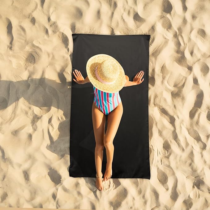 Camping Towel L Size Microfiber Quick Dry Lightweight Travel Body Swimming Pool Beach Towels (Black, 1 Pack L)