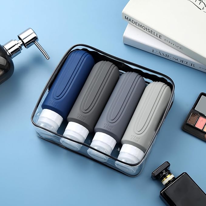 - Oversize 6oz travel bottle: Featuring a PVC toiletry bag, these travel-sized silicone bottles are perfect for storing and dispensing your favorite shampoos, lotions, and other liquids. Designed for convenience and durability, this travel set is a must-have for all your adventures.