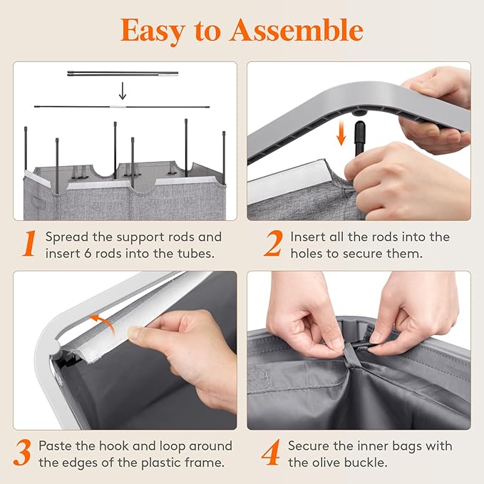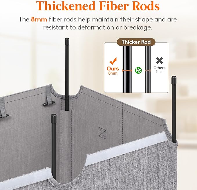 - Structural Stability: The laundry hamper with lid uses hook & loop to attach the main body to the plastic frame, ensuring that the hamper stays more even. The 8mm thick fiber rods are directly fixed to the plastic frame, making the basket stable and preventing the rods from poking through