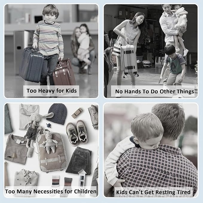 - 【Multiple Safety Features】Equipped with seat belts, footrests, and armrests, our children's luggage provides maximum convenience and protection for your child. The cart height can be adjusted in 3 levels from 30.1 inches to 40.6 inches to meet the needs of people of different heights. 20-inch suitcase fits children ages 3-6 years old. 24-inch suitcase fits children ages 6-12 years old, it's perfect for parents on the go