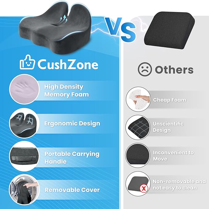 - Advanced Appearance Design: With its larger size and extended tailbone support design, the CushZone seat cushion is ergonomically designed to accommodate many different body shapes, allowing you to sit more upright and reduce the stress of sitting for more than 8 hours
