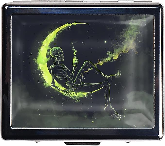 7 Days Chromed Shiny Silver Pill Organizer with Mirror Inside Has 8 Separate Compartments Rectangle Cute Travel Pill Organizer for Purse 7 Days (The Skeleton on The Moon)