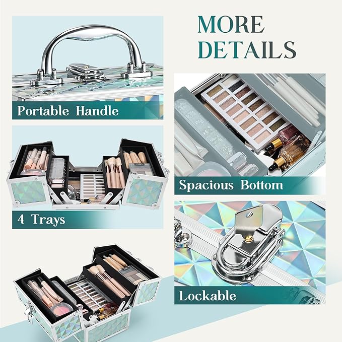 - Portable & Lockable Makeup Travel Case: The portable makeup train case is easy to carry, featuring a comfortable handle for a secure grip. It also has a lockable mechanism with a key for added privacy and security, making it ideal for travel and protecting your valuable cosmetics. Whether traveling or storing makeup, this case is a practical choice.