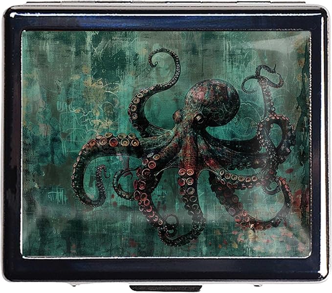 7 Days Chromed Shiny Silver Pill Organizer with Mirror Inside Has 8 Separate Compartments Rectangle,Versatile Storage for Medication - Ideal Travel Accessory (Special Octopus)