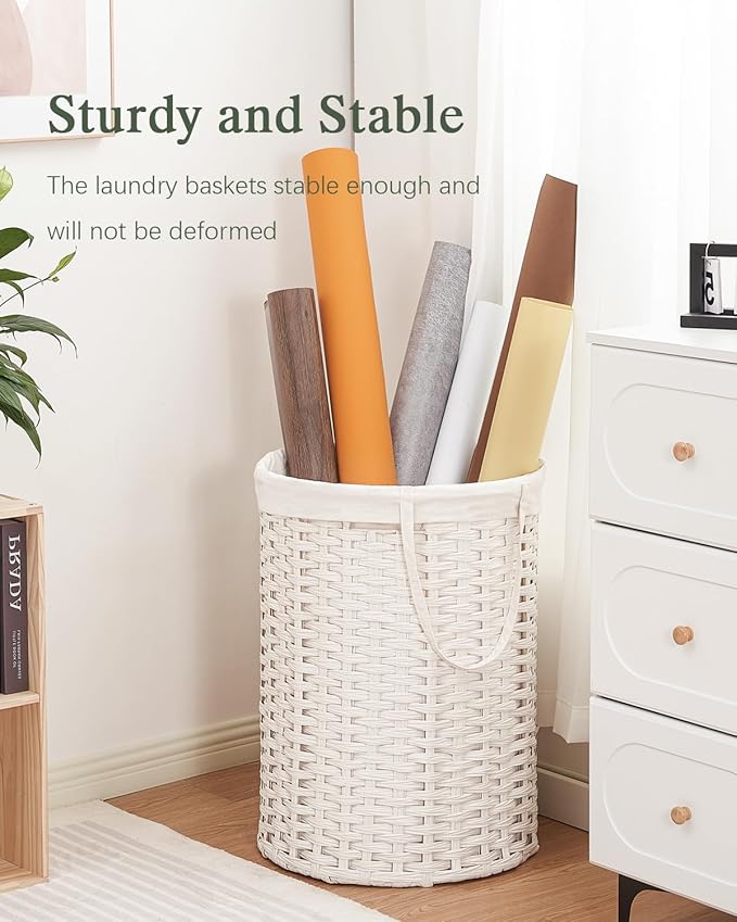 - Simple and Stylish: The laundry baskets is hand-woven from synthetic rattan material, and the circular appearance of the wicker laundry hamper and the free-standing lining bag make round laundry basket easier to store and transport dirty clothes