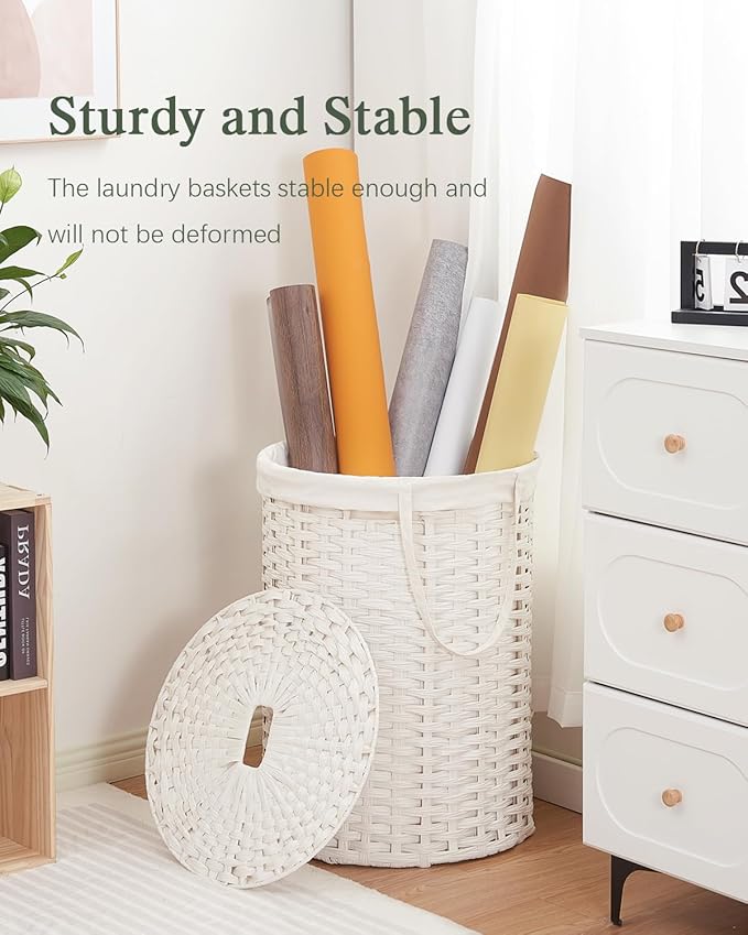 - Simple and Stylish: The wicker storage basket is hand-woven from synthetic rattan material, and the circular appearance of the woven laundry hamper with lid and the free-standing lining bag make it easier to store and transport dirty clothes