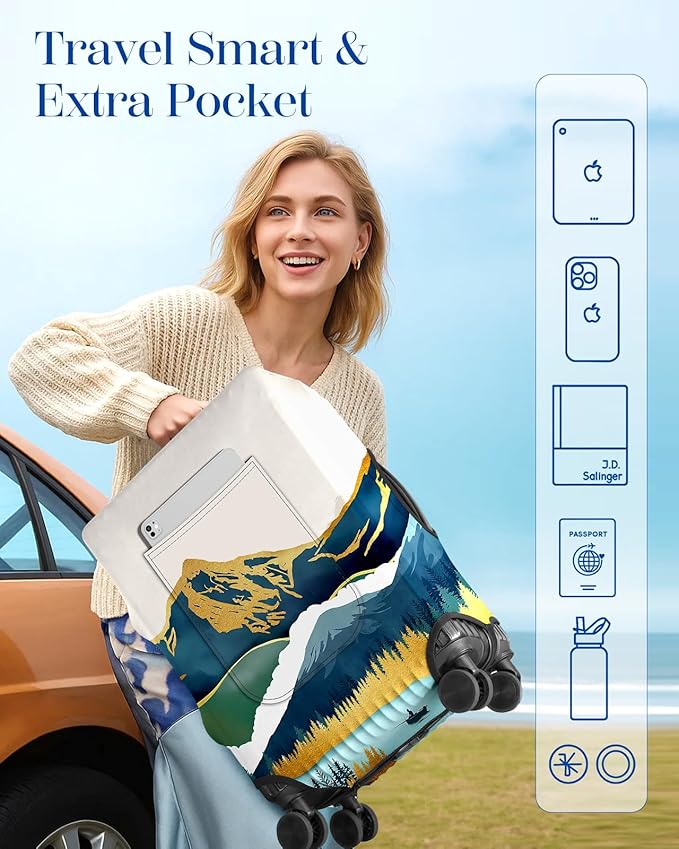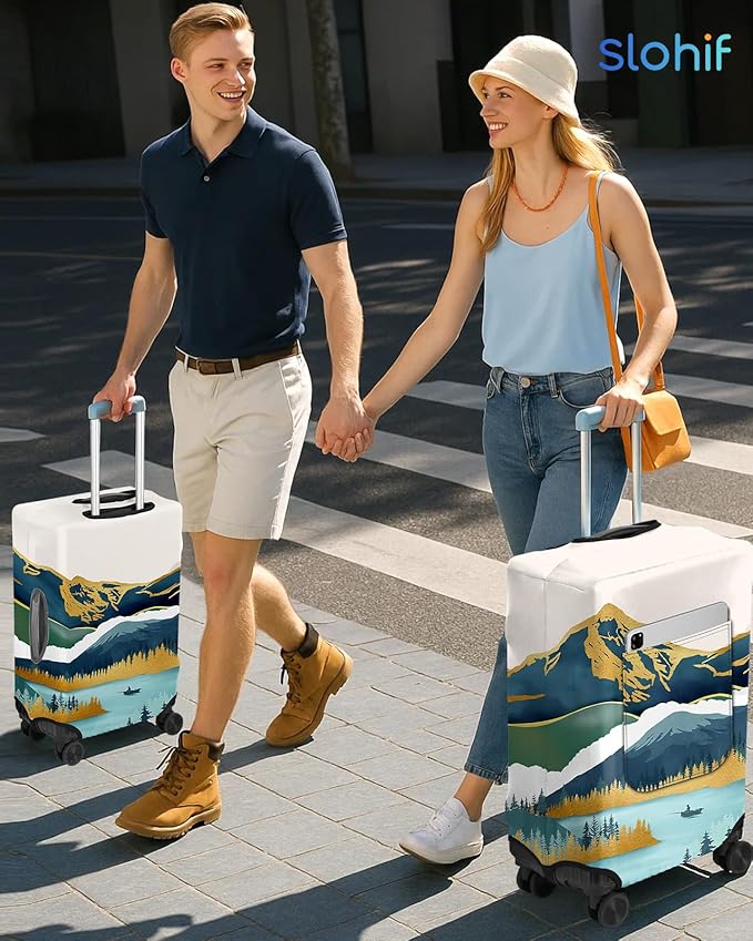 Slohif Luggage Cover for Suitcase Tsa Approved Protector - Luggage Sleeve Large Suit Case Cover Travel Stretch Baggage Case Protective Washable Fit 18-20 Inch Mountain XS